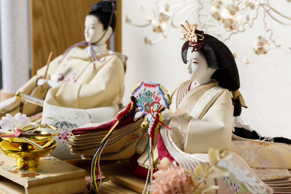 | 手描き加賀友禅ひな人形 芥子(小)四君子 殿 クリームぼかし 姫 クリームぼかし 間口55p 奥行30p 高さ25p | |
