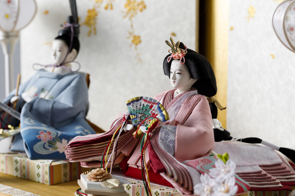 | 手描き加賀友禅ひな人形 芥子(小) 殿 空ぼかし(水色) 姫 桃ぼかし(桃色) 間口60p 奥行33p 高さ35p | |