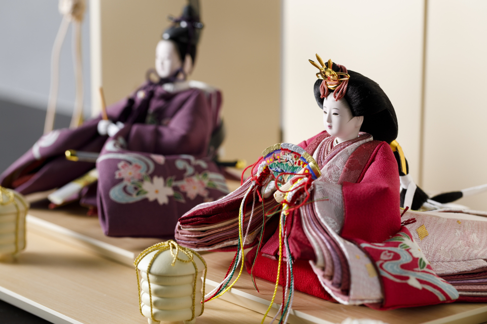 | 手描き加賀友禅ひな人形 結(特小)流水に桜 殿 古代紫(加賀五彩) 姫 赤色 間口50p 奥行30p 高さ27p | |