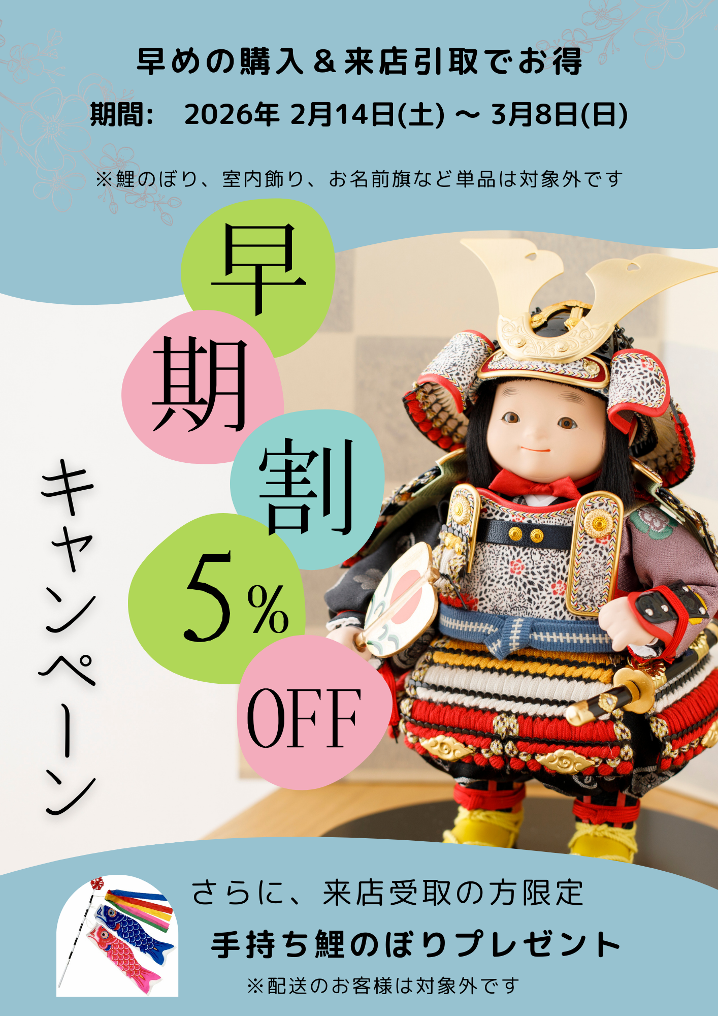 また、来店にて五月人形お受取りのお客様には